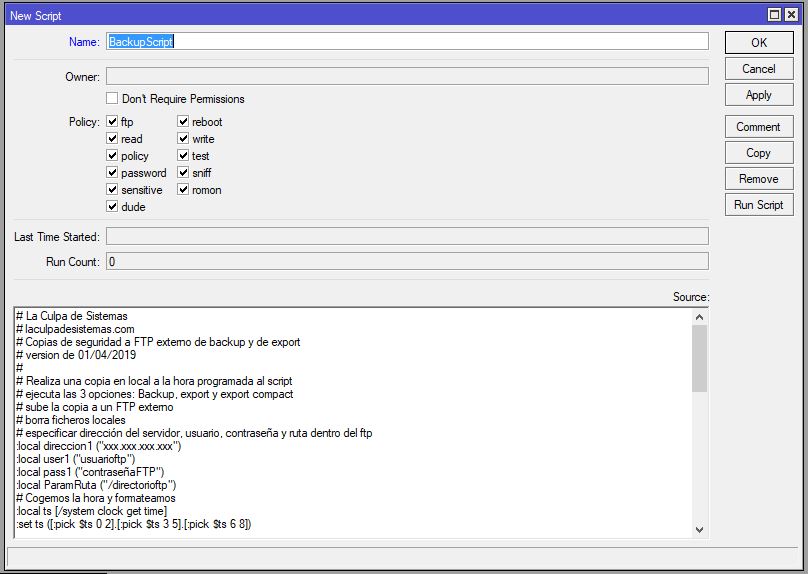 Cuando ya configuramos nuestro MikroTik, como cualquier dispositivo bajo nuestra gestión, hay que incluirlo en nuestro plan de copias de seguridad.
