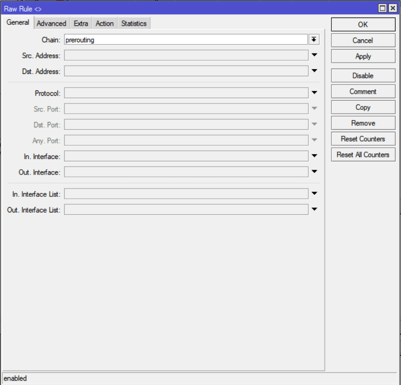 Para esto la opción más eficiente es crear una regla en IP>Firewall>Raw