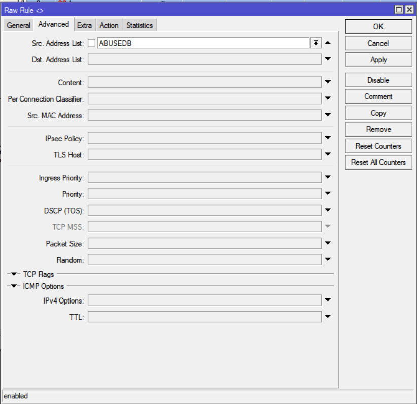 Para «rematar» la faena, solo nos falta decirle a nuestro mikrotik que todas las conexiones que lleguen desde las IP de la lista ABUSEDB les haga drop directamente.